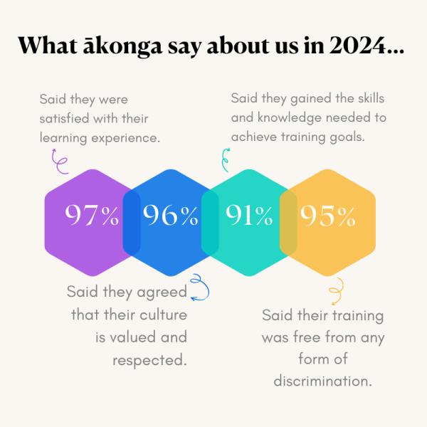 “A lot of support and wraparound services, from enrolment through to course completion, goes into our learners so it is great to see our tutors and support staff efforts reflected in our learner feedback,” says Zanetta Hinton, Director Student Success.