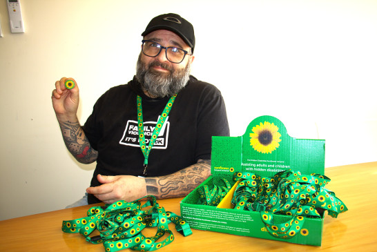 The sunflower logo means they are part of a project, called Hidden Disabilities Sunflower, designed to raise awareness and encourage support in the community for people with physical or psychological disabilities that are invisible.